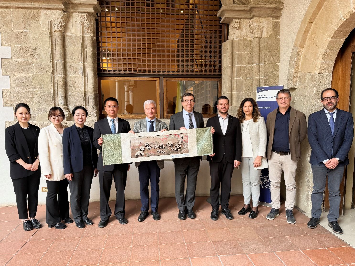 在意大利巴勒莫,代表团一行访问巴勒莫大学(University of Palermo,简称UNIPA),与校长马西莫·米迪里(Massimo MIDIRI)、副校长法比奥·马佐拉(Fabio MAZZOLA)、国际化方向校长代表、经济学和工商管理学位课程主席、国际关系合作部门负责人等校方高层进行会谈。会上,杨石磊院长重点阐述了杏吧探花