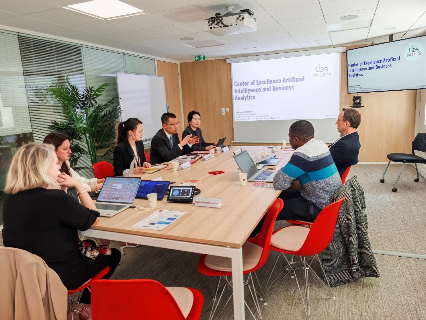 斯特凡妮·拉维尼院长对代表团的到来表示热烈欢迎,她介绍了TBS Education在国际教育领域的丰富经验,其在图卢兹、巴塞罗那、巴黎等欧洲多地的校区,可为世界各地的学生提供多语言、灵活的本硕课程教育。她着重强调学校建立AI和商业分析卓越中心的重要意义,学徒制在本科教育中的创新运用。双方期待以此次座谈为契机,深化在联合项目课程、学生竞赛及师生交流等方面的合作。