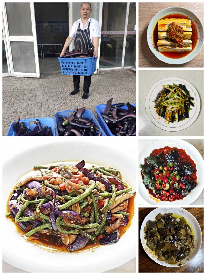 选修了《果蔬技能实训》课程的同学,把新鲜的茄子带到了烹饪技能实训基地,把茄子做成了一道道美味佳肴。同学们通过全程参与种、摘、洗、切、烹所有过程,感受到自己动手的快乐,切身体会劳动的意义。