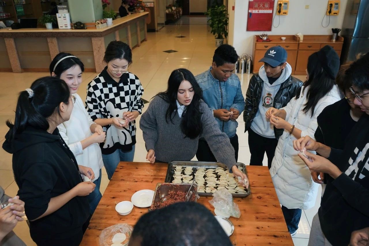 的30位海外留学生(巴基斯坦等多个国家留学生)在柳林食府2层开展了一次特别的活动——“包饺子迎冬至”。