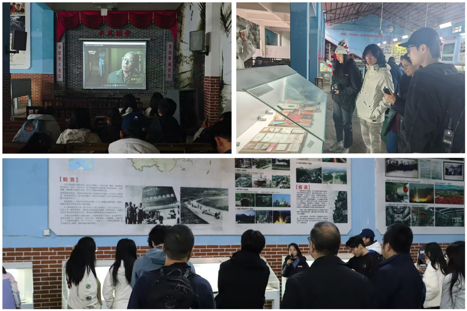 参观过程中,同学们神情专注,跟随讲解员的指引,依次观看历史文献、实物展陈与场景复原。斑驳的机床、泛黄的工作手册、复原的实验室场景,将大家的思绪带回到那个火红的年代。展览馆所承载的“艰苦创业、勇于创新、团结协作、无私奉献、”的“三线精神”,与当代青年学子所应具备的责任担当与家国情怀形成了深刻的时代共鸣。通过深入了解三线建设者们筚路蓝缕的奋斗历程,同学们对国家发展的艰辛与成就有了更立体的认知,对自身的时代使命也有了更深刻的思考。