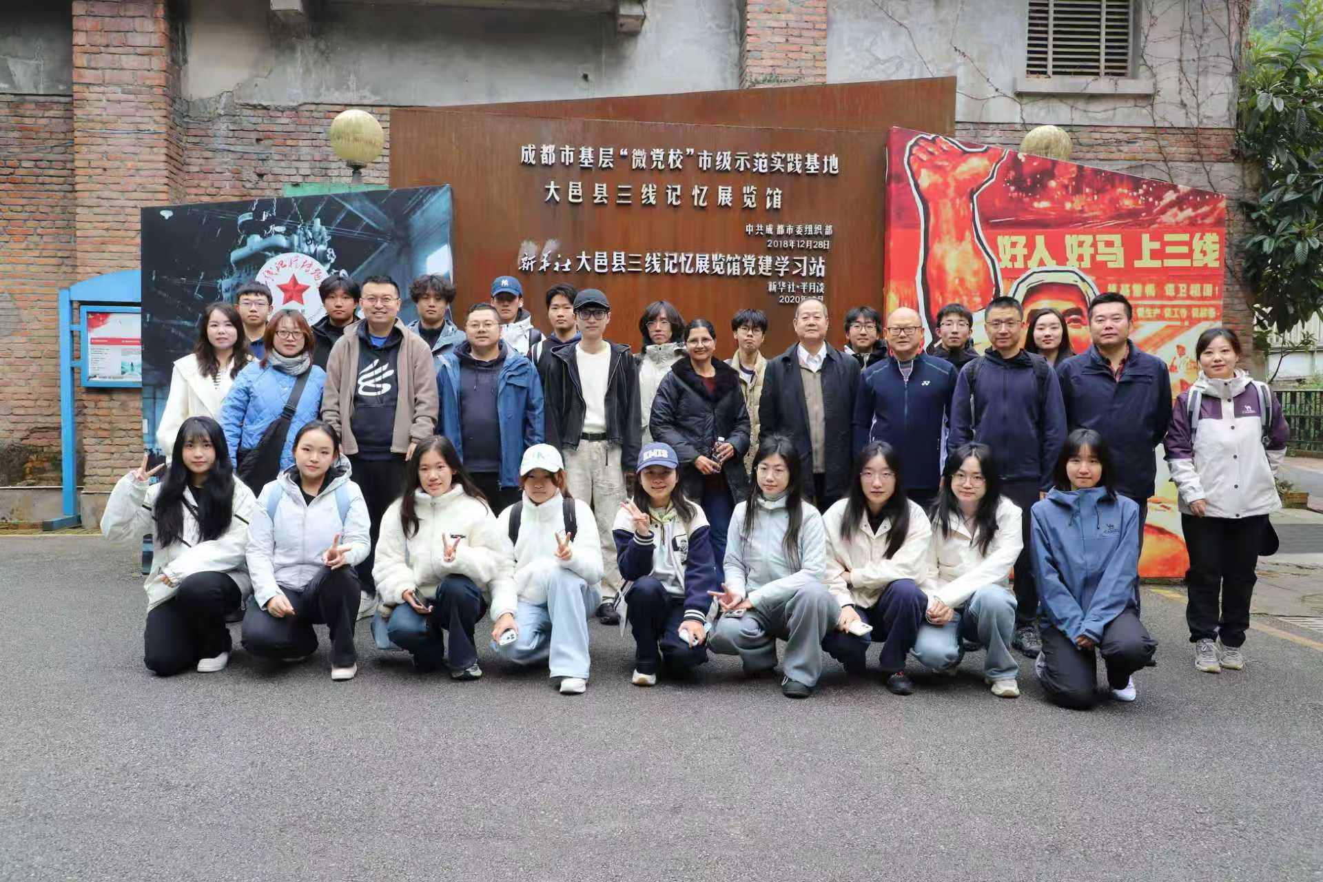 师生代表组成的实践研学团队,前往成都市大邑县开展了一场融合历史寻访与自然探索的主题教育活动。本次活动以“传承三线精神,砥砺报国之志”为主线,通过参观三线记忆展览馆与徒步雾中山两大环节,引导学子在历史与自然的双重课堂中汲取奋进力量。