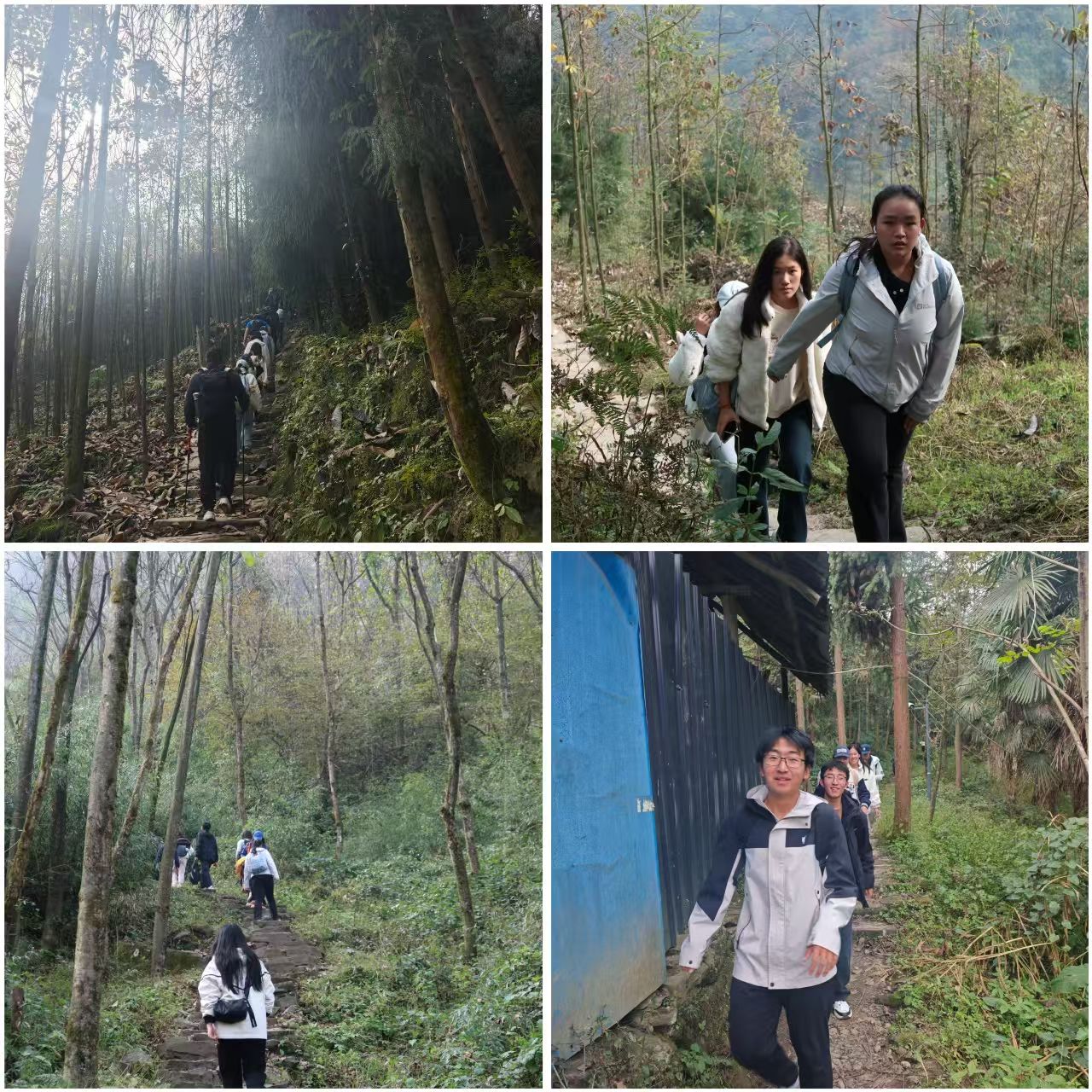 山间薄雾缭绕,石阶蜿蜒。徒步队伍沿古道而上,同学们相互鼓励,彼此扶持。前行者为后者提醒路况,体力充沛者主动分担行李,每一个伸出援手、每一句加油打气,都成为崎岖山路上最动人的风景。在攀登蓥华顶的陡峭路段,团队协作精神得到了淋漓尽致的体现。这不仅是一次对身体素质的锻炼,更是一次对团队凝聚力与同学情谊的生动淬炼。当全员成功登顶,俯瞰群山时,收获的不仅是壮丽的自然风光,更是共同克服困难后油然而生的集体荣誉感。