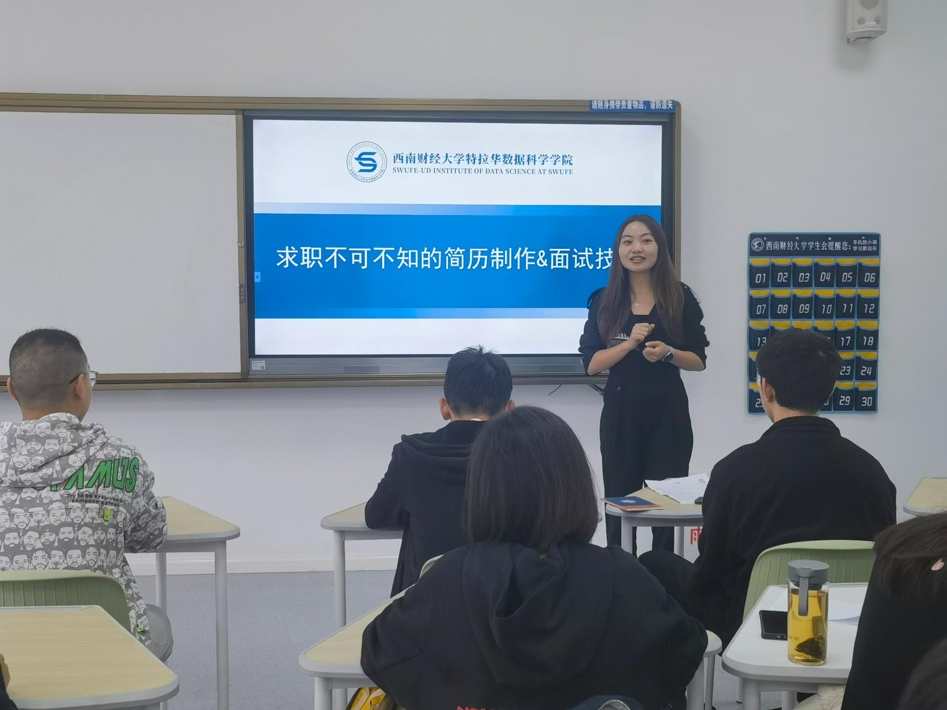 在经世楼B202举行了简历制作、面试技巧培训,特邀高顿财经人力资源总监、互联网及房地产行业资深猎头涂晓孟女士为同学们开展了题为“求职不可不知的简历&面试技巧”培训。会上,涂晓孟针对简历制作做了详细讲解,为同学们揭秘了面试通关小技巧。现场还开设简历门诊,手把手指导同学们修改自己的简历。