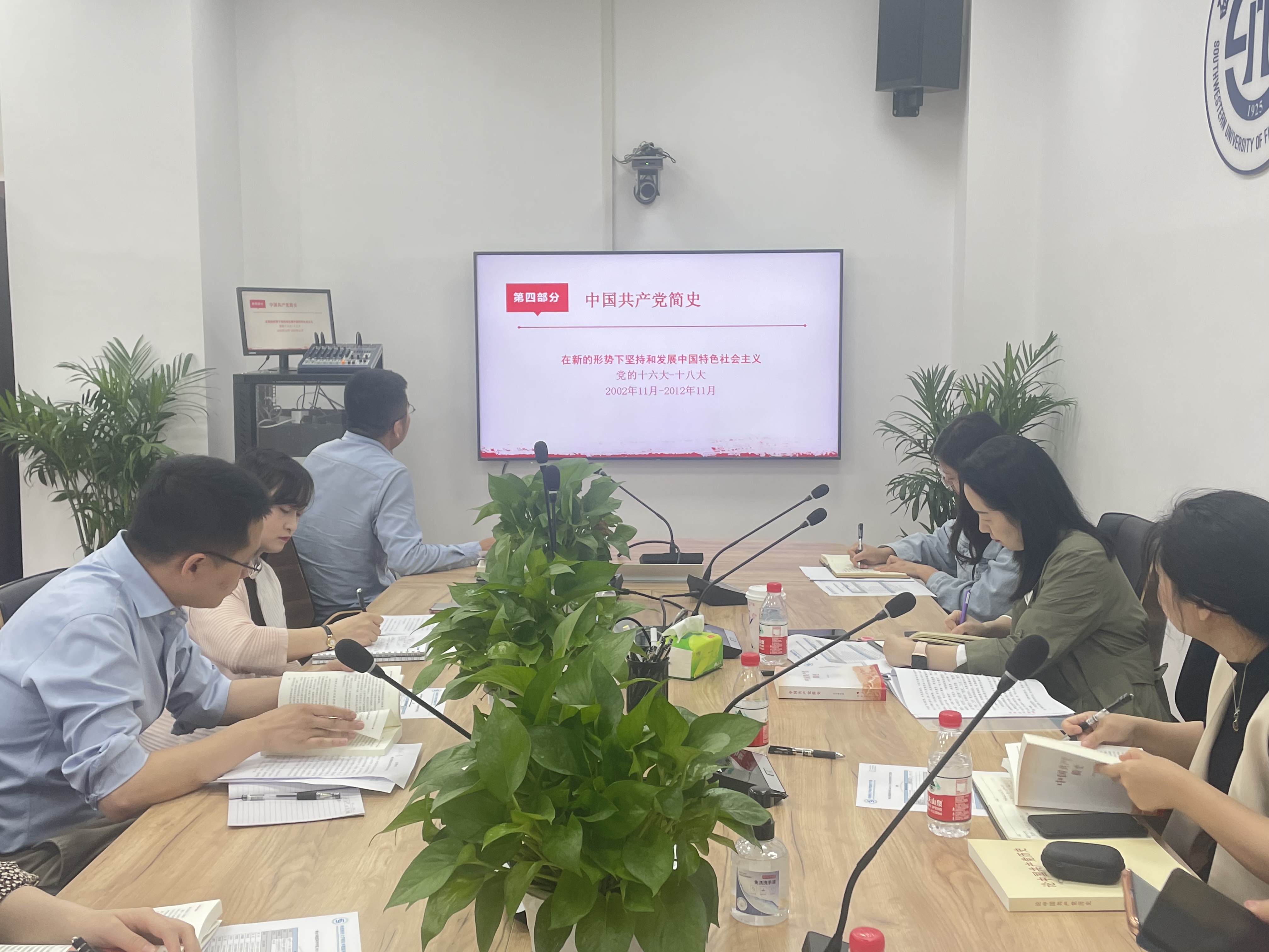 在格致楼G101视频会议室召开4月系列政治理论学习交流会,杨石磊院长和全院教职员工参加,学校党史学习教育指导组第九指导工作组组长梁婷以及联络员袁悦到会进行了指导。