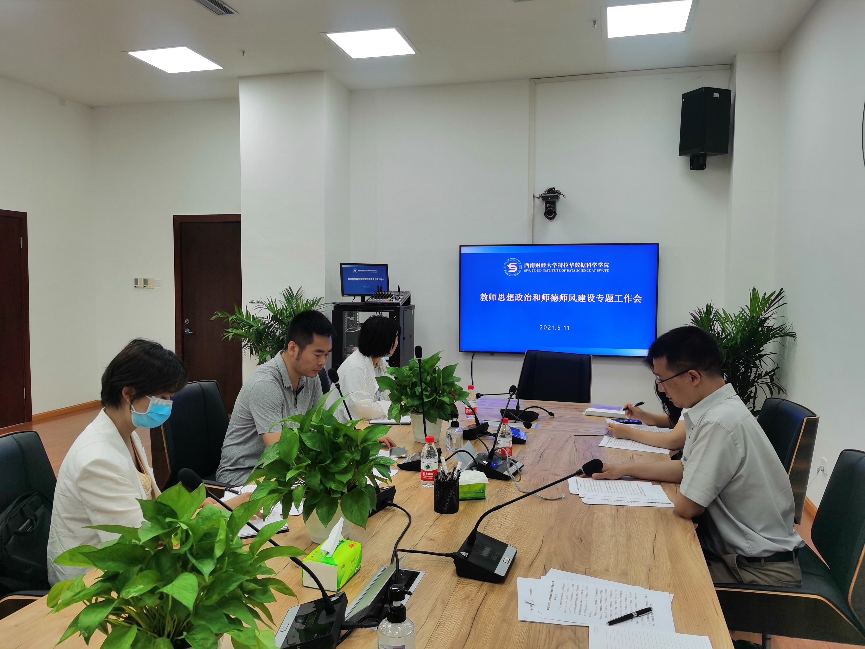 在格致楼G101视频会议室专题学习传达教育部思想政治和师德师风建设经验交流暨师德专题教育启动部署会会议精神,杨石磊院长和在校教职员工参加。