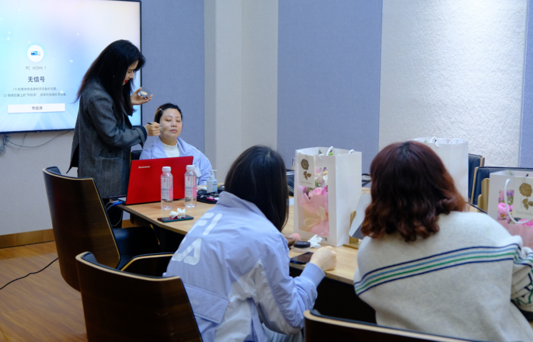工会组织本单位女性教职工,开展了化妆穿搭沙龙活动。
